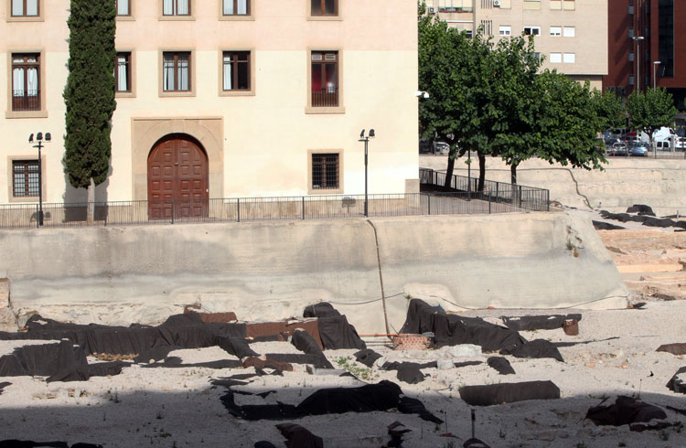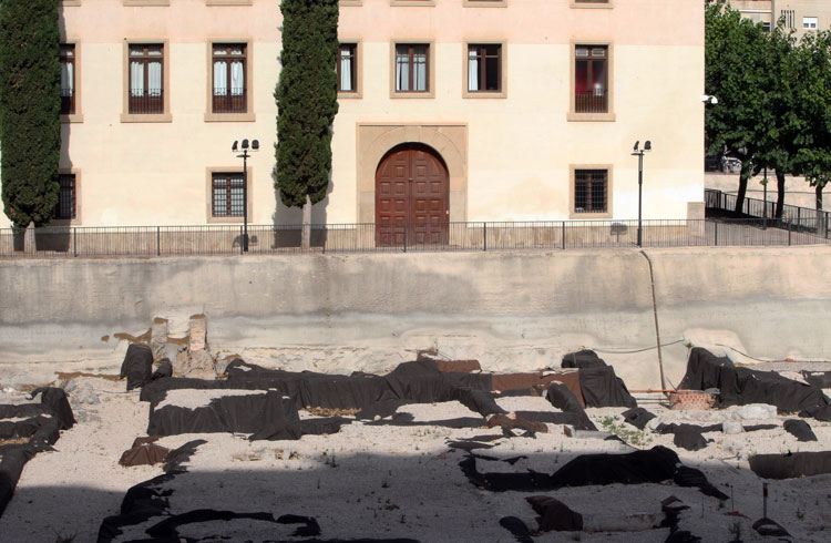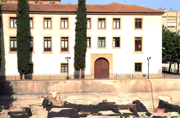 - La prolongación del yacimiento de San Esteban es el propio Palacio que lleva su nombre. Debajo del Palacio, está la prolongación de los restos arqueológicos. ¿Quién le pone el cascabel al gato? ¿Por qué no derriban el Palacio? A lo mejor es que no son tan importantes los restos encontrados, como se creía… Foto Pepe Riquelme.