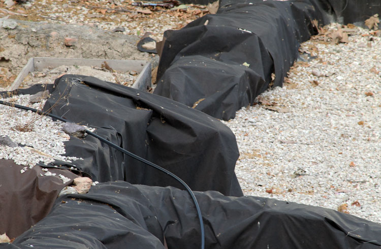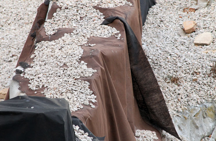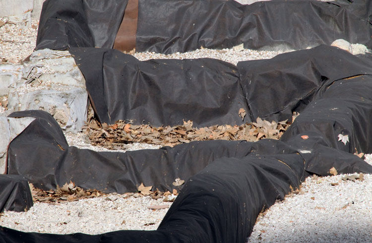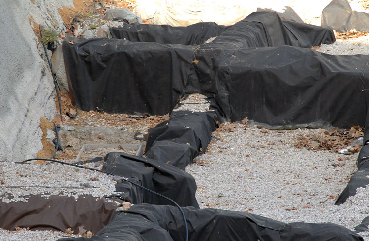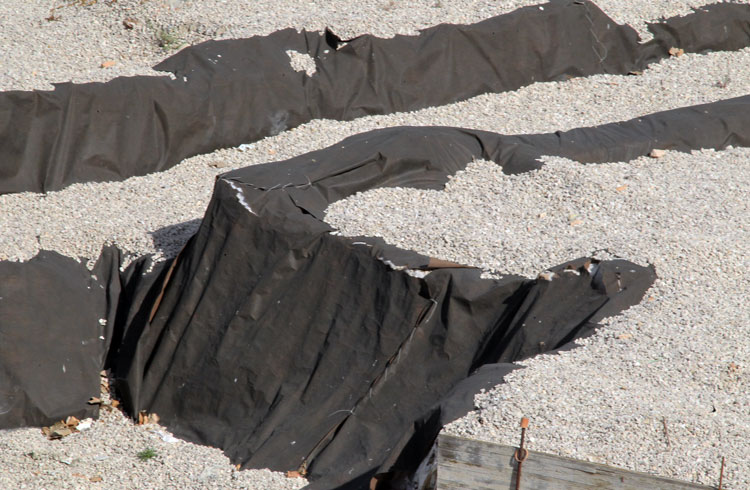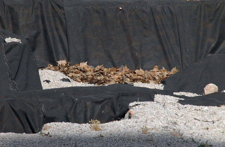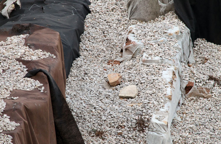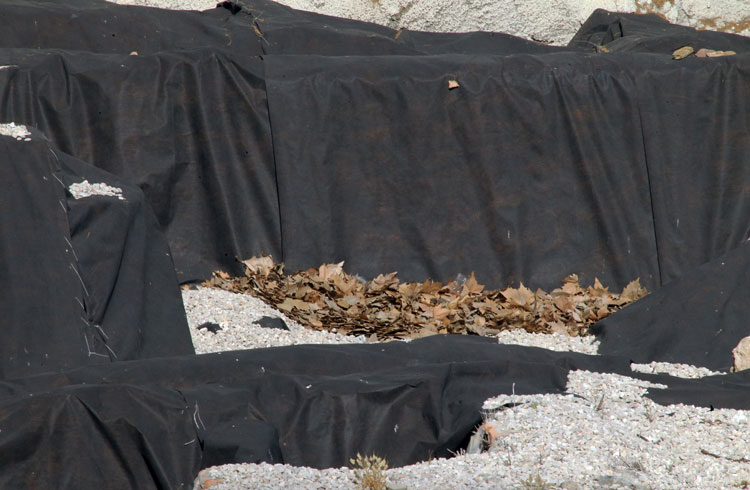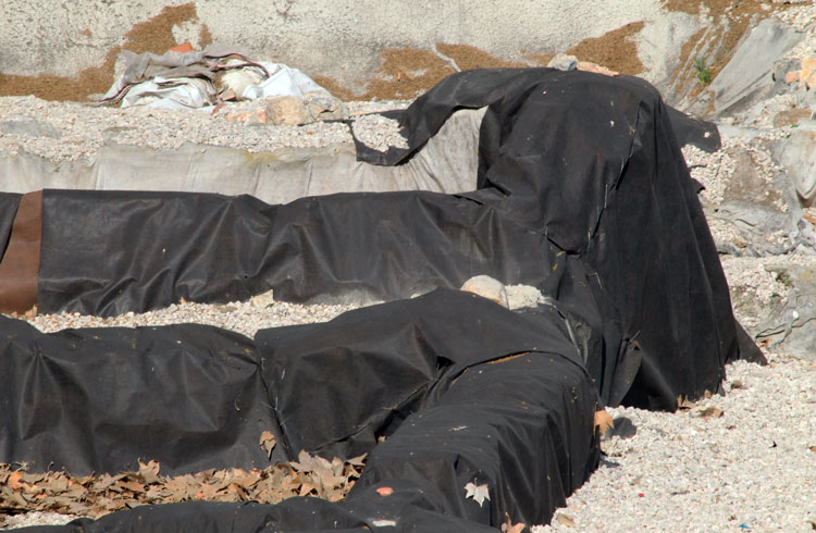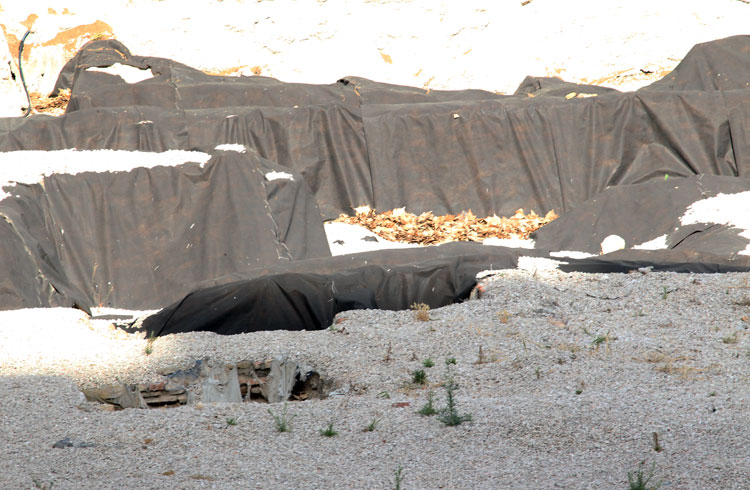 Años y años los restos arqueológicos de San Esteban tapados con plásticos. Y ahora se acumulan bolsas de plástico y hojas secas