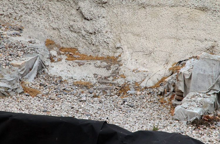 Cualquier rincón del yacimiento de San Esteban es bueno, para acumularse las hojas secas. Foto Pepe Riquelme.