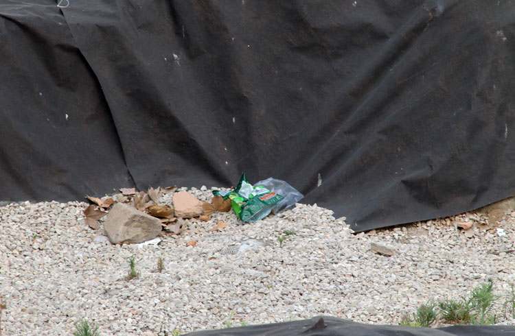El guarrete estado de vertedero del yacimiento de San Esteban: Hojas secas acumuladas, bolsas de plástico de gusanitos… esa es la imagen del yacimiento de San Esteban en Murcia. Foto Pepe Riquelme.