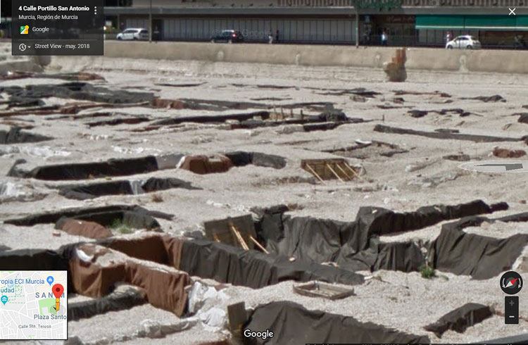 Igualmente basta recordar cuando allá por 1975, se estaba construyendo el Corte Ingles de Murcia y comenzaron a excavar para construir los pilares y el aparcamiento subterráneo, lo que encontraron.