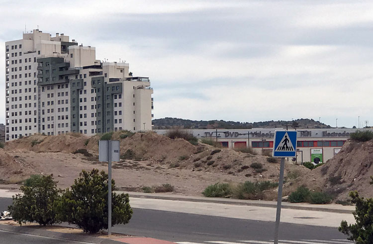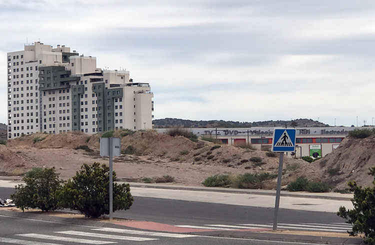 También iban proyectados en los alrededores de Las Torres de Nueva Condomina campos de golf, y otras zonas de equipamientos. Pero todo ha quedado en un auténtico secarral que hasta los lagartos y lagartijas, con el sol penetrante de Murcia, se lo piensan al atravesar su territorio.