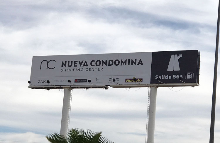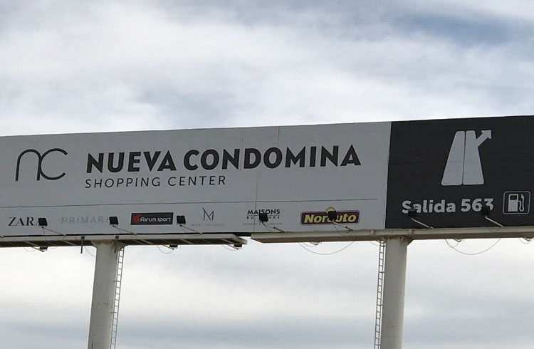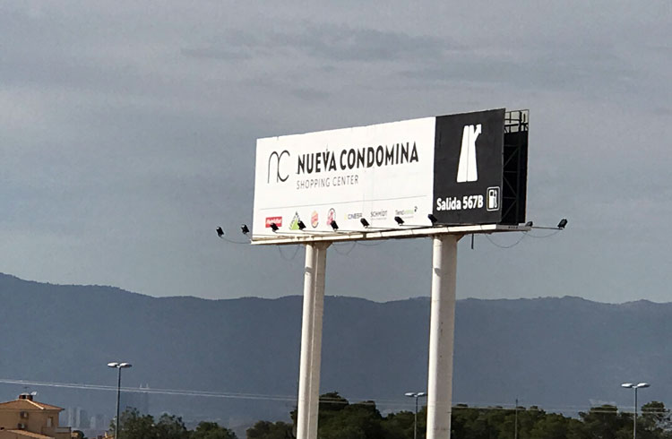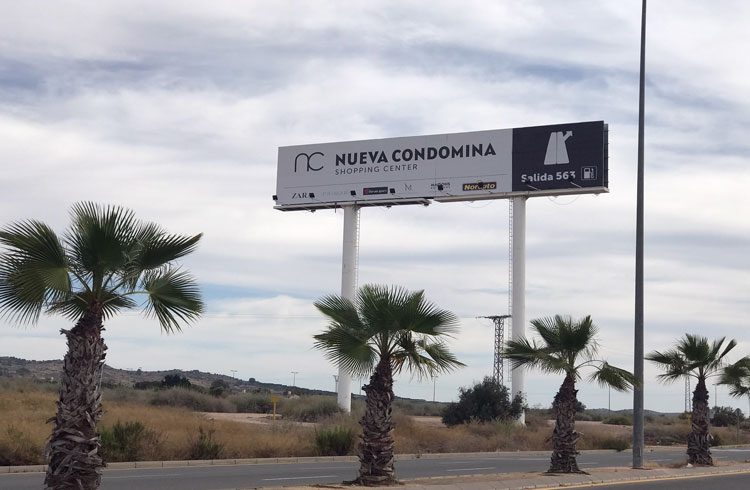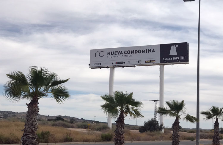 - Cartel anunciador de la salida a Nueva Condomina en la Autovía Murcia-Alicante. Foto Pepe Riquelme.