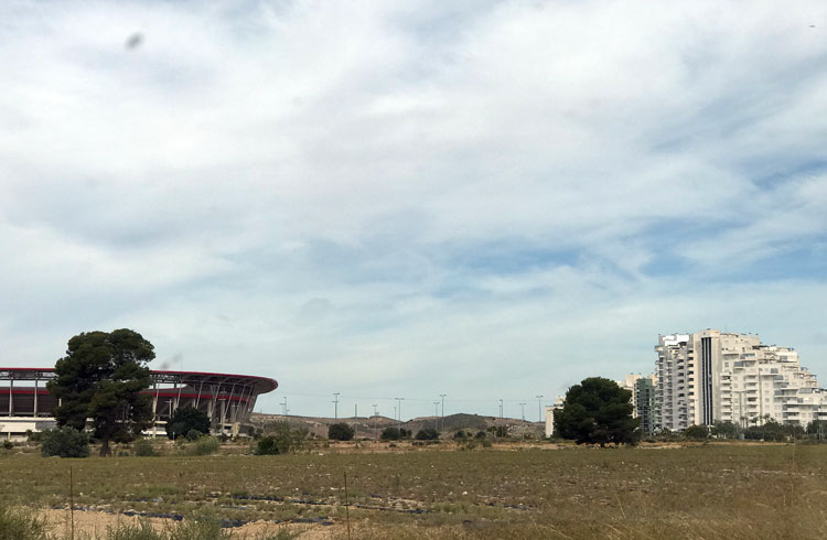 Aquí iba un campo de golf y urbanizaciones frente a las Torres de Nueva Condomina y del estadio. Nunca mas se supo. Foto Pepe Riquelme.