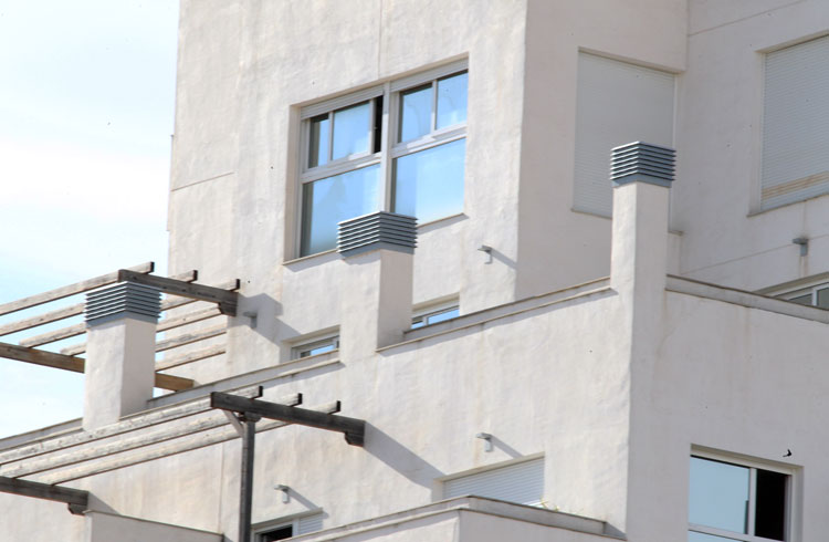 En las nuevas periferias el acceso a los edificios nunca es peatonal como en la ciudad densa y consolidada, por el contrario la entrada se produce en vehículo privado. Por eso, el proyecto propone que el garaje sea un lugar con luz y ventilación natural abierto a los espacios ajardinados, pues el aparcamiento es el verdadero portal de ingreso a los volúmenes de vivienda colectiva. Todos los apartamentos tienen dos o más orientaciones para garantizar el soleamiento y la ventilación natural. Fachadas abiertas por completo al paisaje y protegidas del soleamiento directo, dan una nueva amplitud al espacio doméstico. Sostenibilidad, calidad espacial, flexibilidad y oferta diversa caracterizan los nuevos modelos de vivienda.