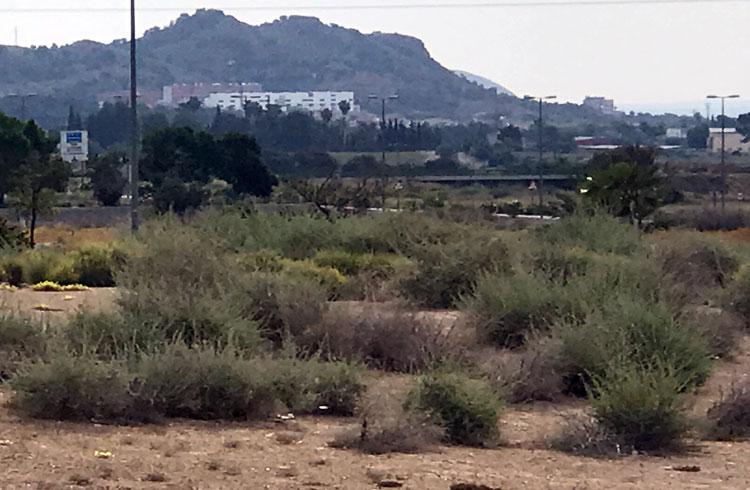 - Aquí iba el campo de golf y otras urbanizaciones. Hoy un frondoso y abundante secarral recuerda lo que pudo ser y no fue, por la crisis del ladrillo y la avaricia inmobiliaria y los pelotazos sin control. Foto Pepe Riquelme.