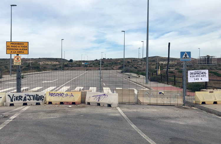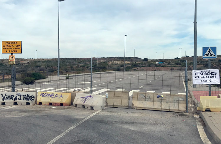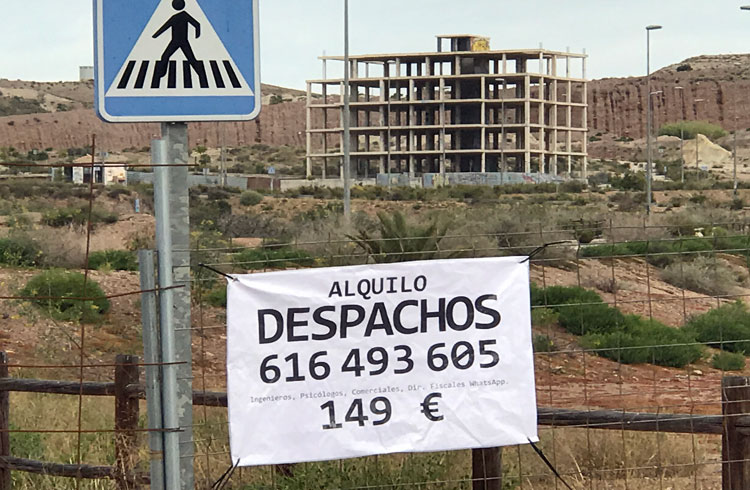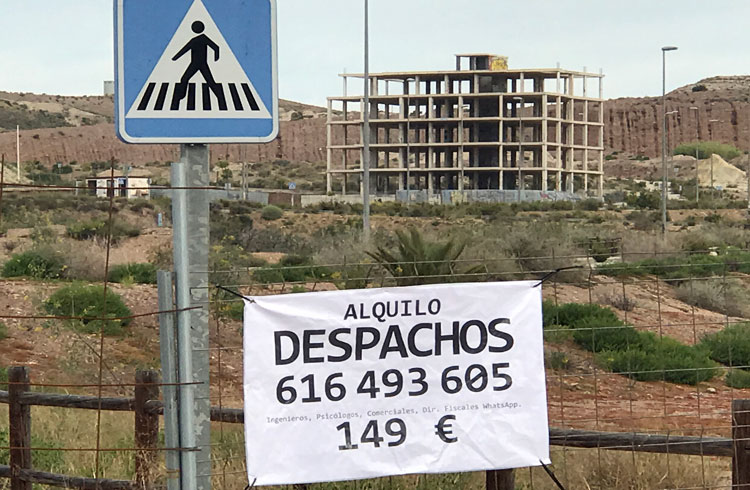 - Una imagen vale mas que mil palabras. ¿Los despachos los anunciaban antes de terminar la obra? Pues si fue así, los despachos se quedaron en mitad de la nada hace ya unos cuantos años. Foto Pepe Riquelme.